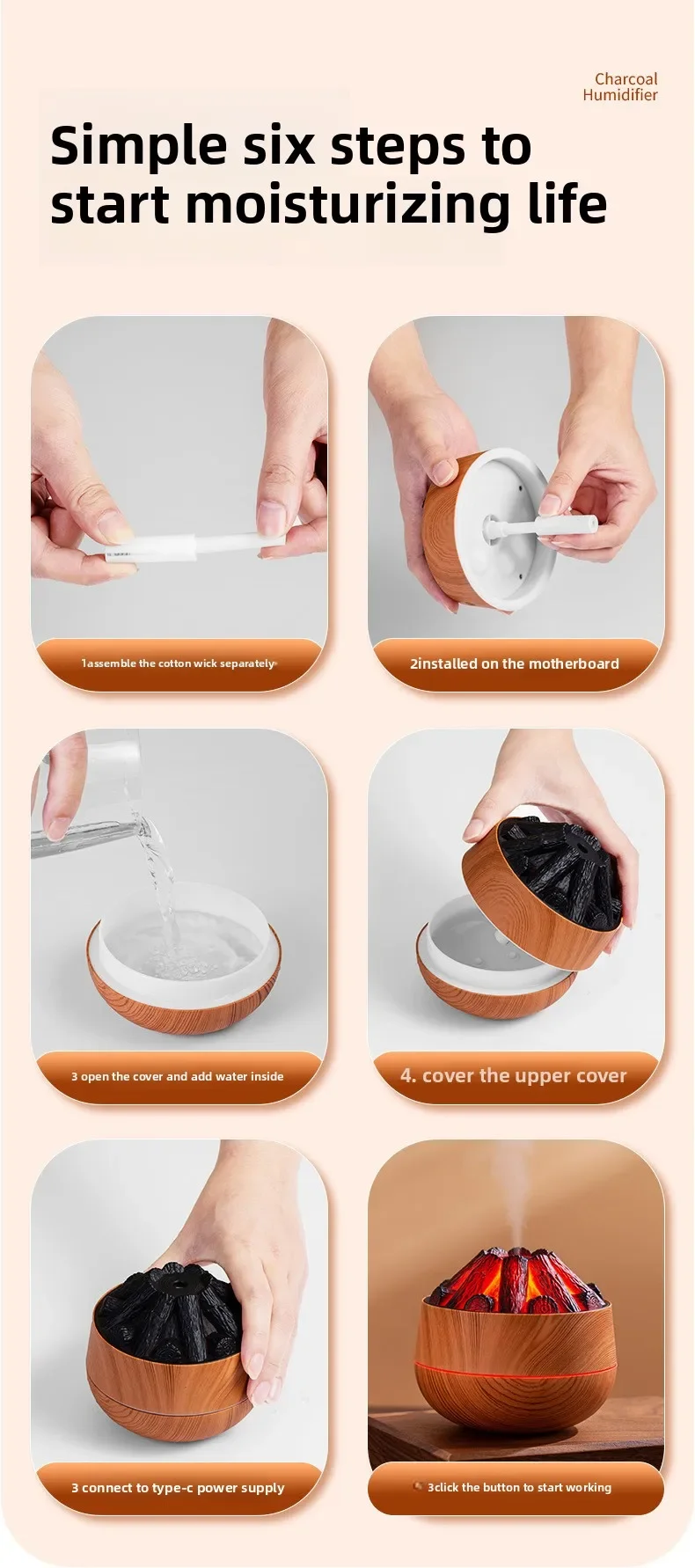 USB Mini Home Small-Scale Aromatherapy Humidifier with Flame Simulation, Customized Gift Portable Essential Oil Diffuser
